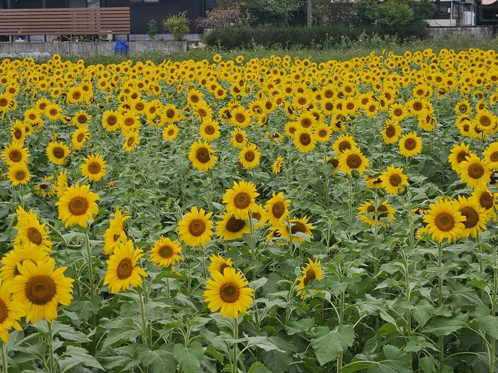 ヒマワリがまだいっぱい咲いている場所です。どこだと思いますか?