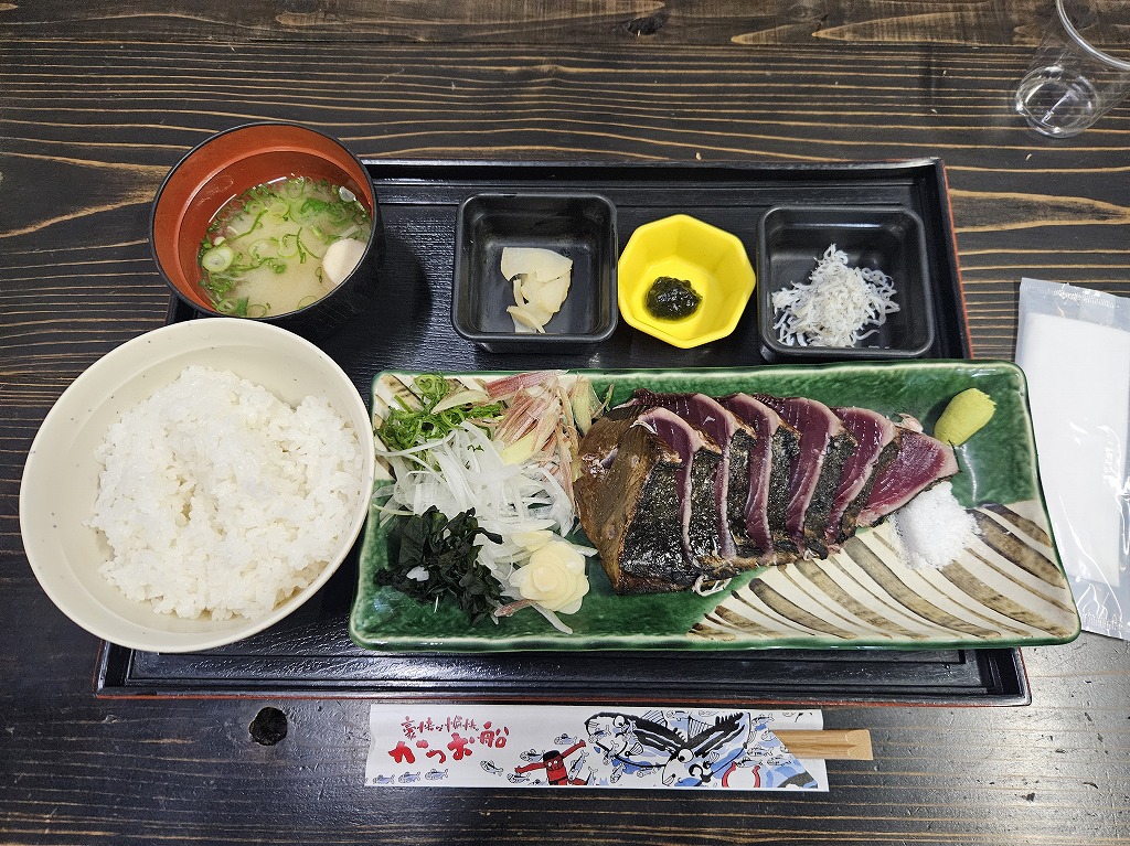 朝9時過ぎには出発!!!行きは、高速道路を走り(外気温は4度でした、、、寒くても頑張って走りました!)、いつもの『土佐タタキ道場』で、実際に藁焼きをしてタタキ定食をいただきました(^^)/