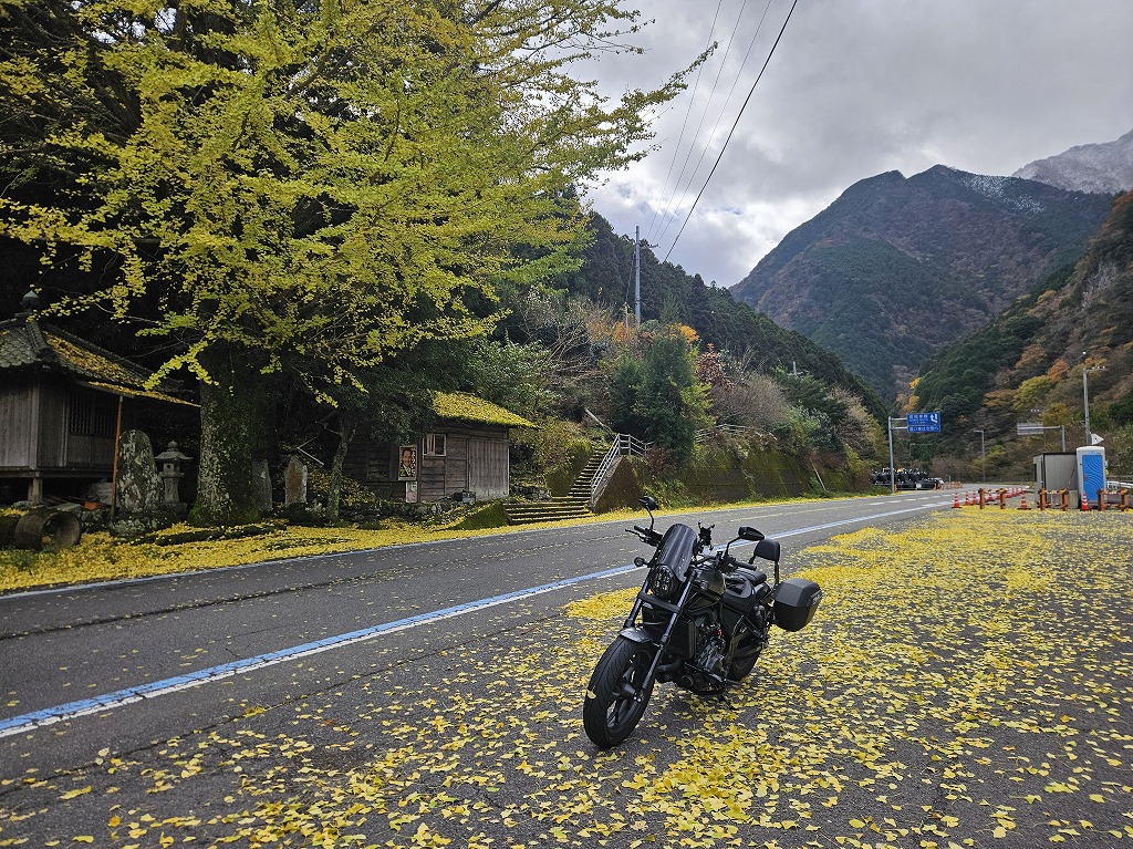 ひょっとしたら、もう遅いかなあと思ったのですが、皆さんとお約束していたので、黄色に色づいたイチョウの大木(川来須大師堂の横)を想像しながら目指しました。距離の短い「弾丸ツーリング」です!!!
